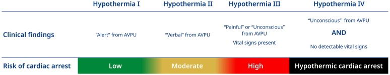 Mida la temperatura central con un termómetro de baja lectura para diagnosticar la hipotermia accidental.•Utilice el sistema de ensayo suizo si no se puede medir la temperatura central.•Transfiera a los pacientes hipotérmicos con factores de riesgo de paro cardíaco inminente y a aquellos en paro cardíaco directamente a un centro de soporte vital extracorpóreo (ECPR) para que se recalenten.•Retrasar la RCP o usar la RCP intermitente en pacientes con paro cardíaco hipotérmico con una temperatura central inferior a 28 °C cuando la RCP inmediata o continua no es factible.•Retrase más intentos de desfibrilación si la fibrilación ventricular (VF) persiste después de tres choques hasta que la temperatura central sea > 30 °C.•Por debajo de 30 °C, la adrenalina se acumulará y puede tener efectos más perjudiciales que beneficiosos. Dé 1 mg de adrenalina por vía intravenosa una vez para facilitar el ROSC a menos que esté planeando el inicio inminente de la ECPR. Aumente los intervalos de administración de adrenalina a 6-10 minutos si la temperatura central es de 30-35 °C.•Considere el uso de un dispositivo mecánico de RCP si el transporte se prolonga o cuando hay dificultades con el terreno.•Pronóstico hospitalario basado en el recalentamiento exitoso en la predicción del resultado de la hipotermia después de la puntuación de soporte vital extracorpóreo (HOPE).•Recalentamiento hipotérmico detenido pacientes con oxigenación de membrana extracorpórea veno-arterial (VA-ECMO).•Inicie el recalentamiento de soporte vital no extracorpóreo si no se puede llegar a un centro de ECPR en un tiempo razonable (por ejemplo, 6 h).