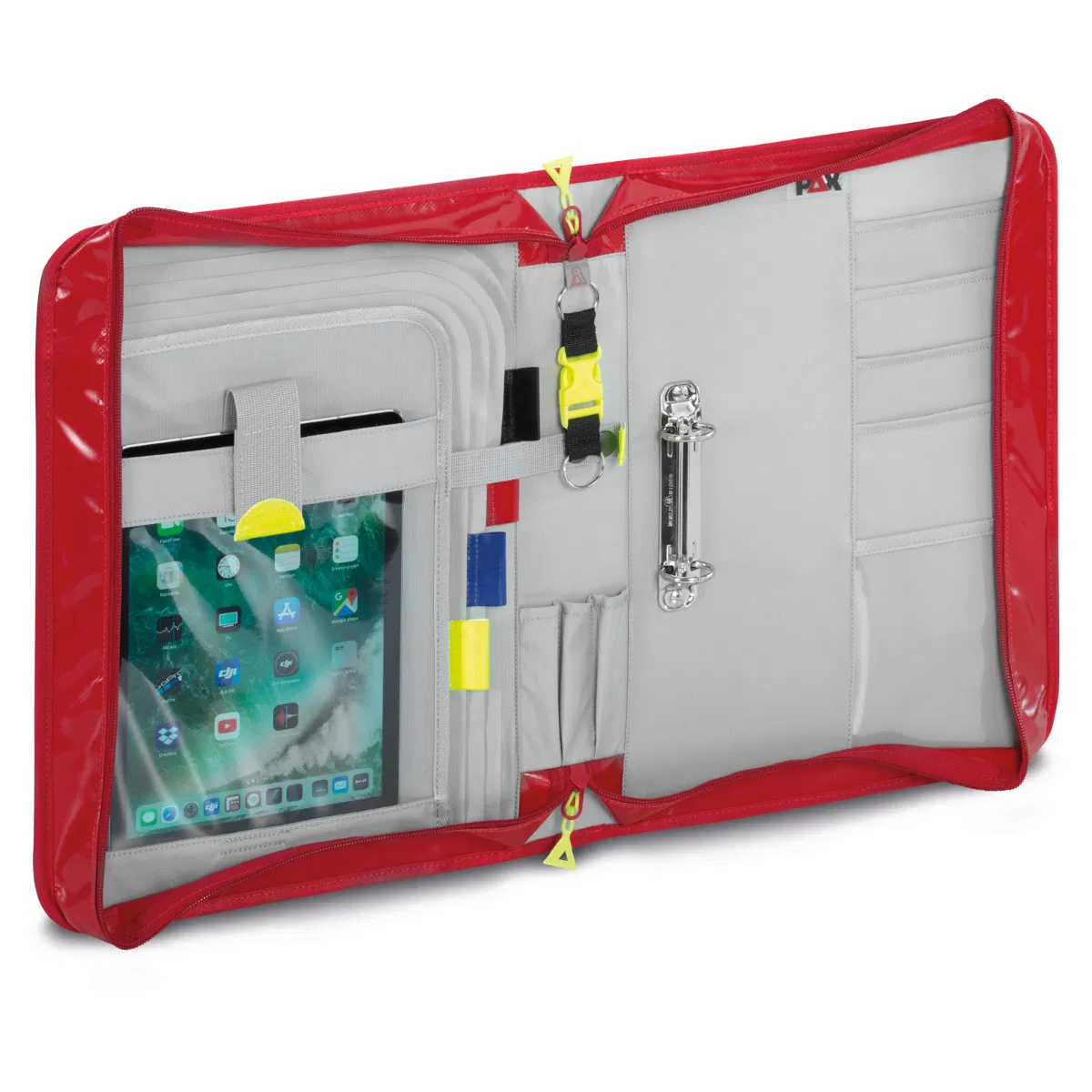 Formularios, documentos, lápices e incluso tu tableta tienen cabida en nuestro Multiorganizador para cuadernos de bitácora en su práctico formato DIN A4. Ideal en combinación con nuestro arnés PAX (Art. n.° 12444). Gracias a las piezas de espuma incluidas, incluso las tabletas más pequeñas se sujetan de forma segura en el compartimento previsto para ello.